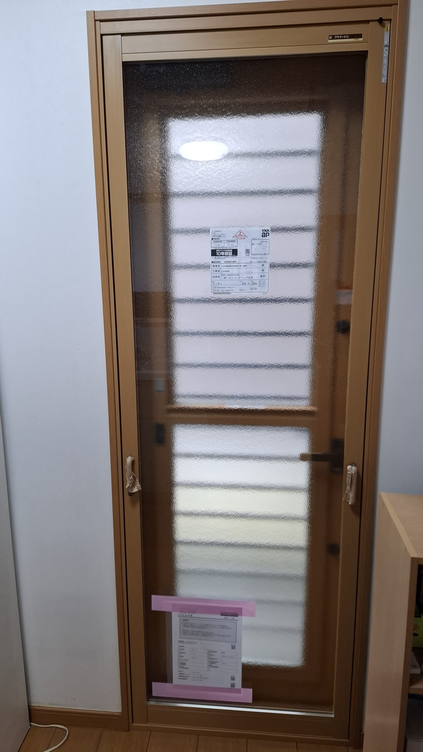又は今回は脇の部分が小さい事から、ガラスと、枠を加工して設置致しました。