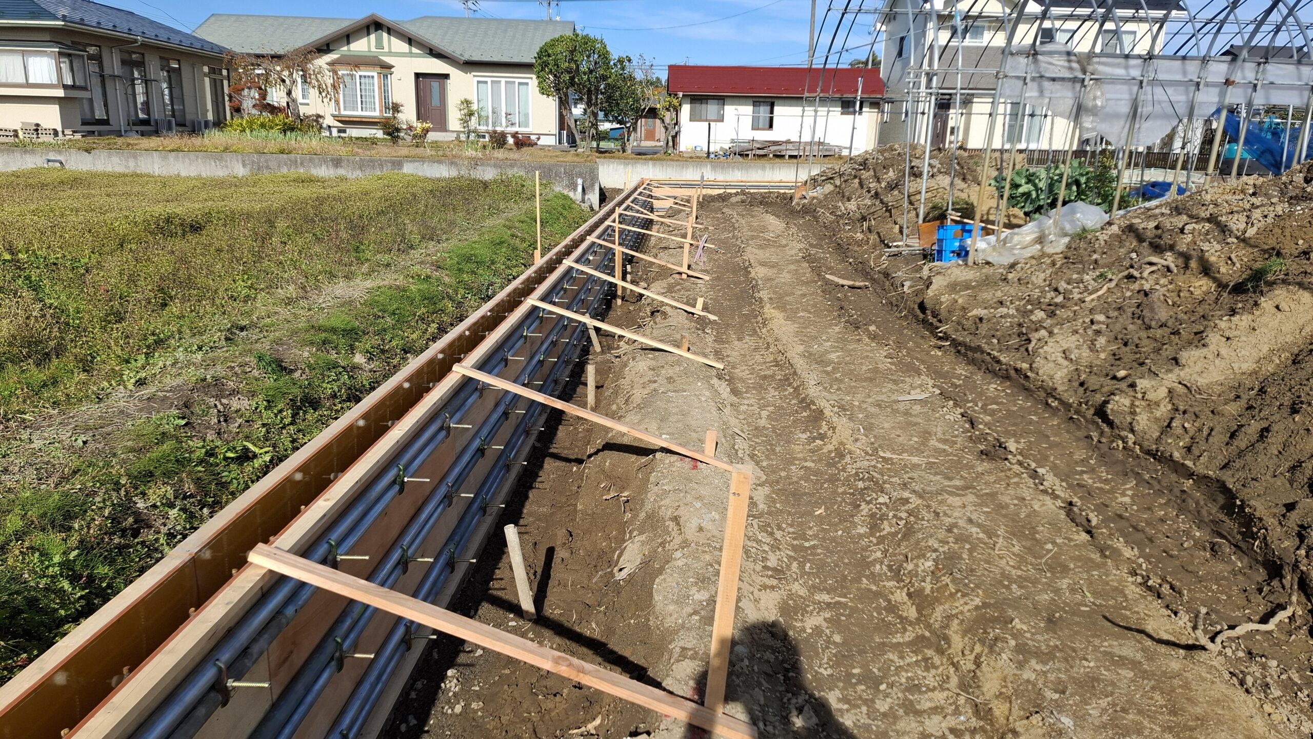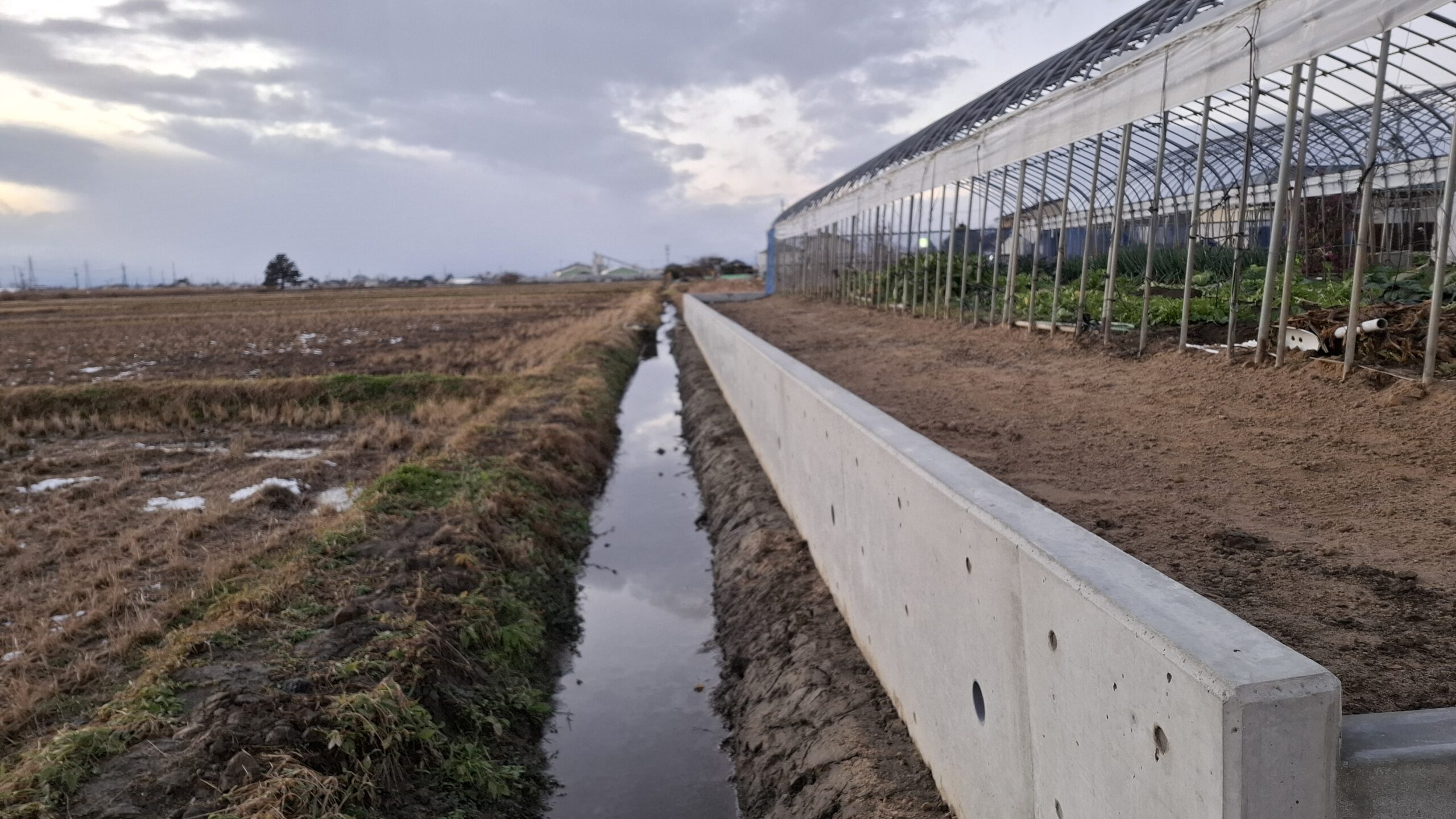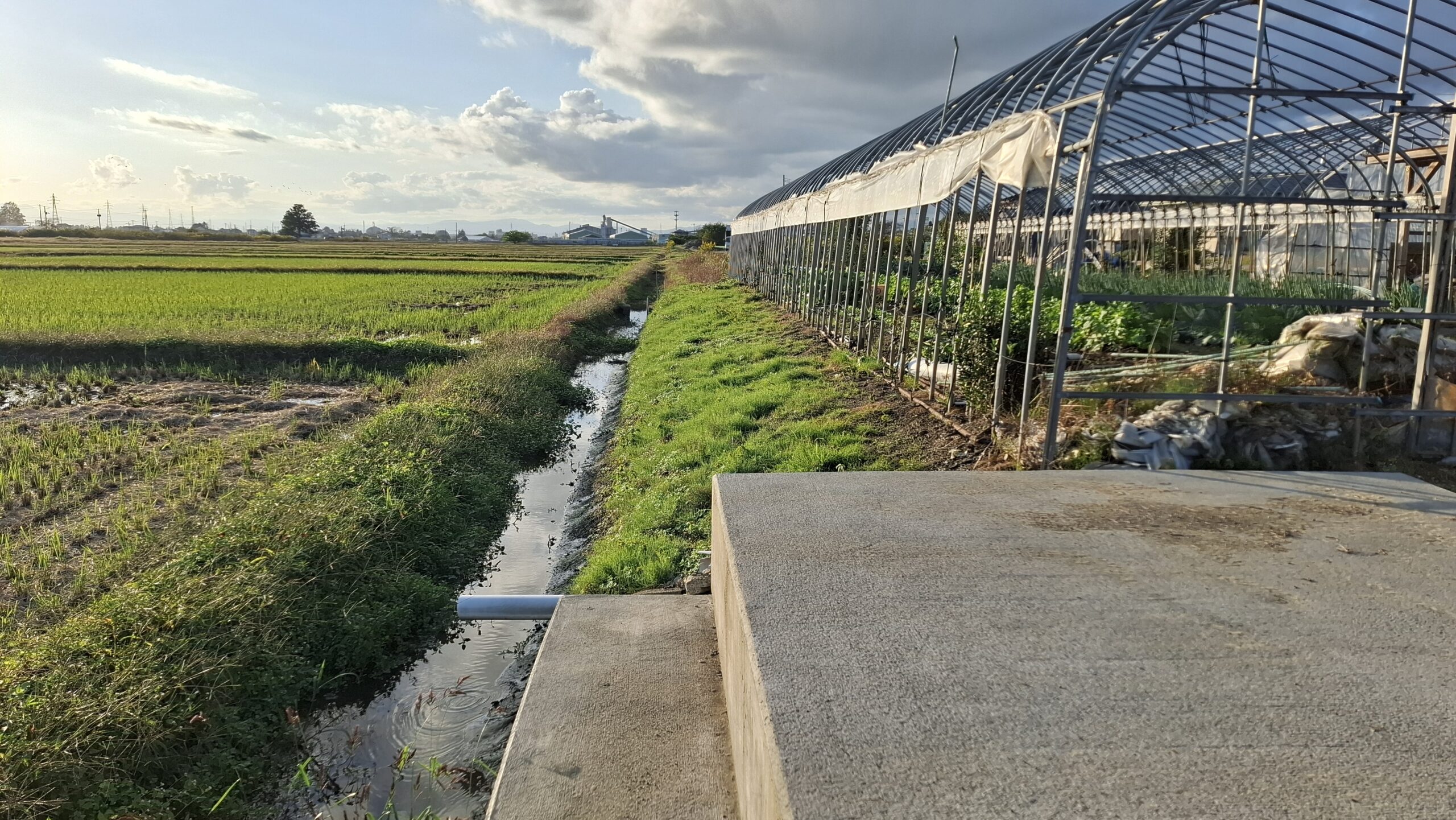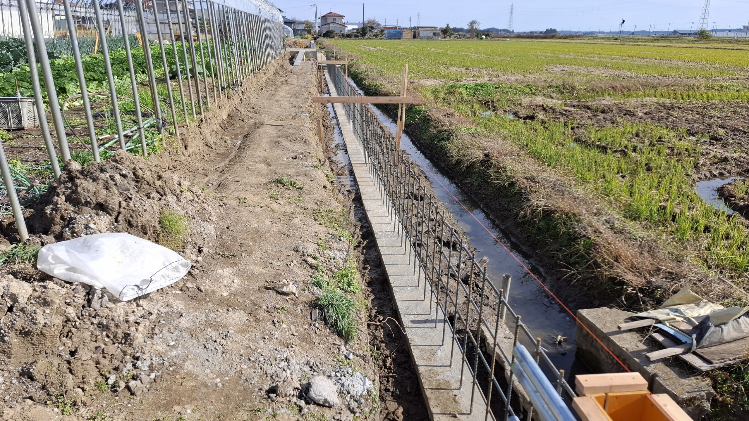 施工場所は田んぼ沿いで農業用水路が近くを流れており、元々土が水分を含んでいる状態でした。