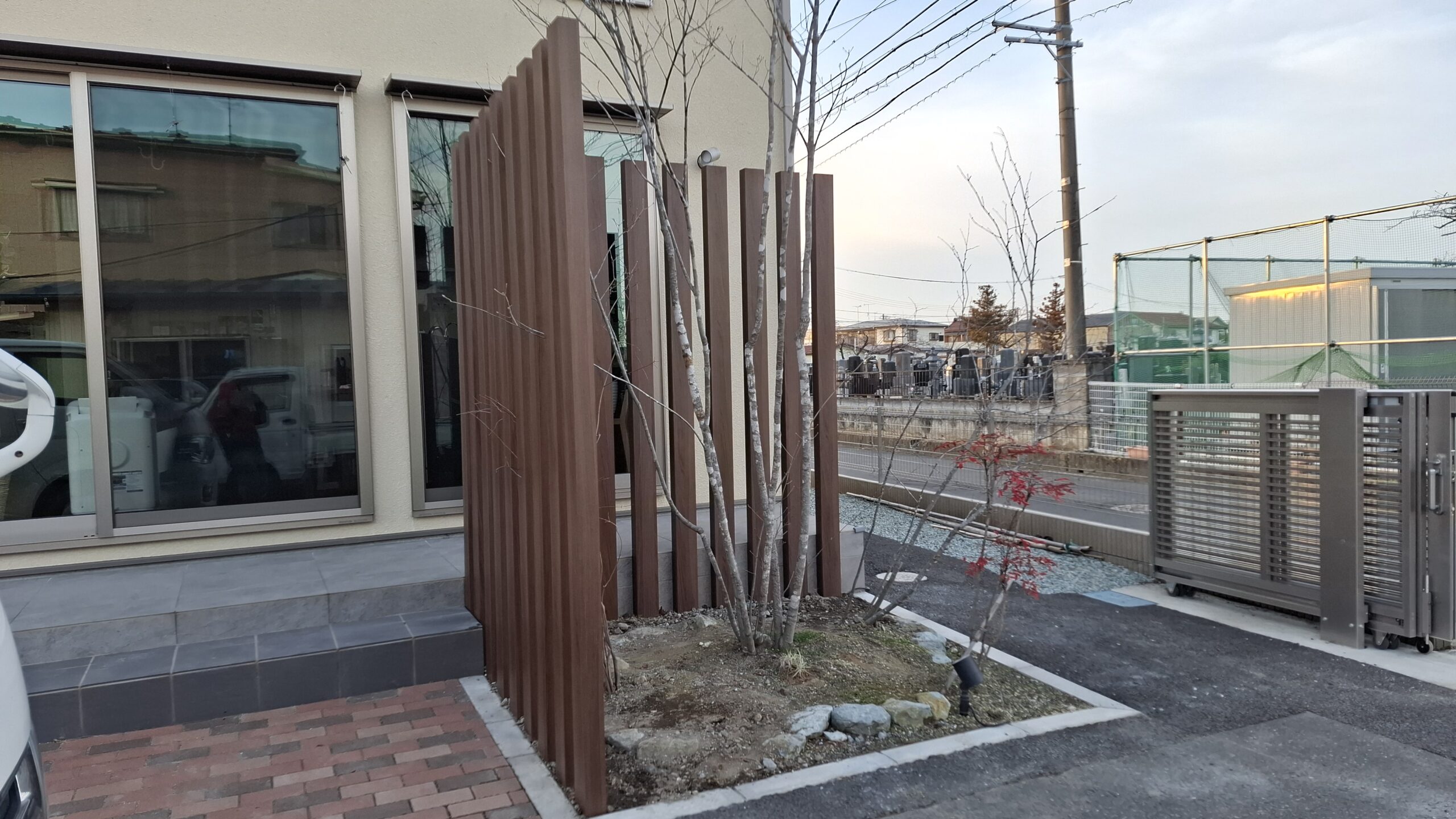 建物が道路沿いで通行人からの視線が気になるので建物に合うお洒落で目隠しが出来るフェンスが欲しいとの要望がありました。