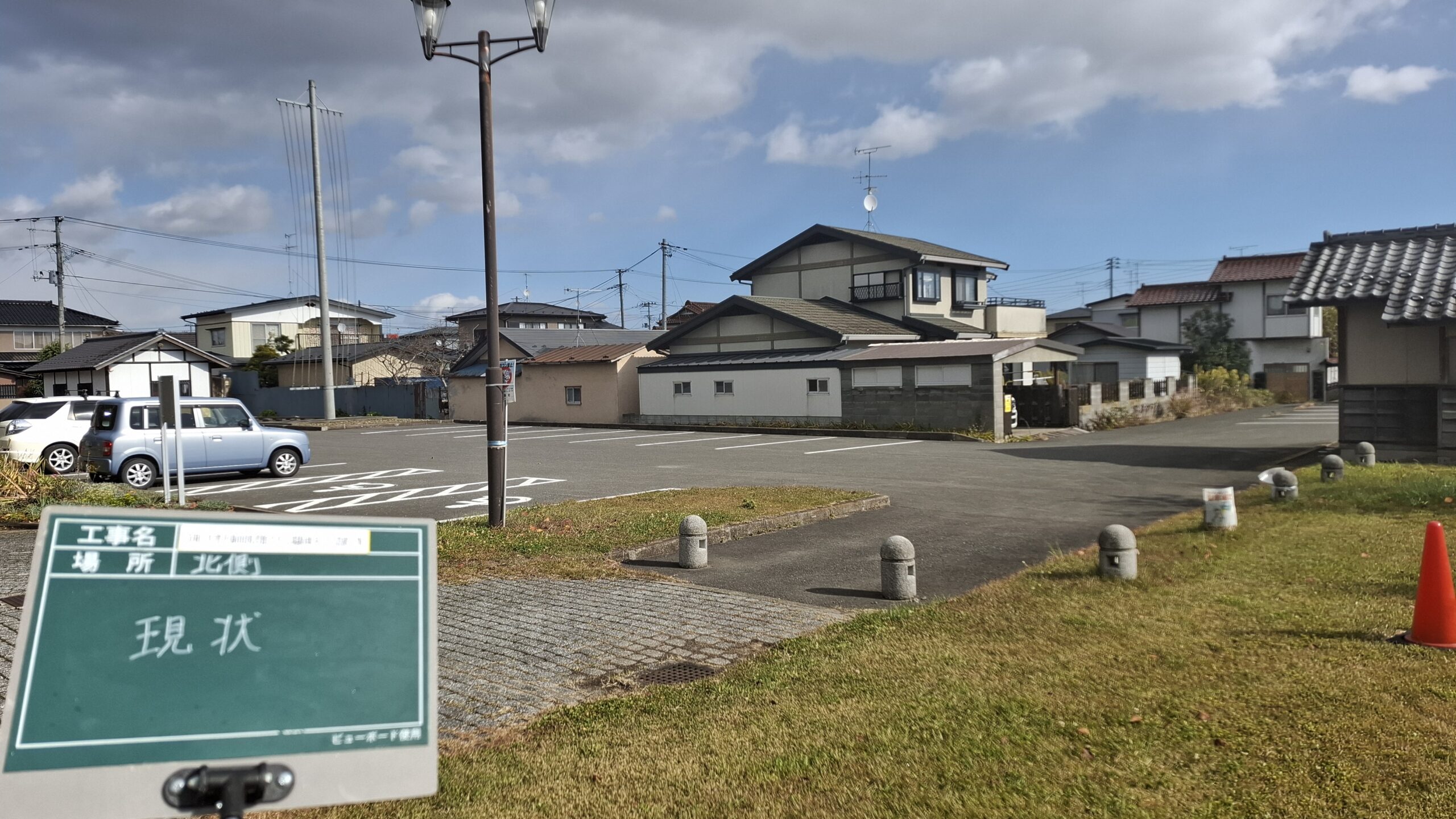 木造平屋駐在所の解体を行い、砕石敷き均しをしたうえで、木柵ロープで区画いたしました。