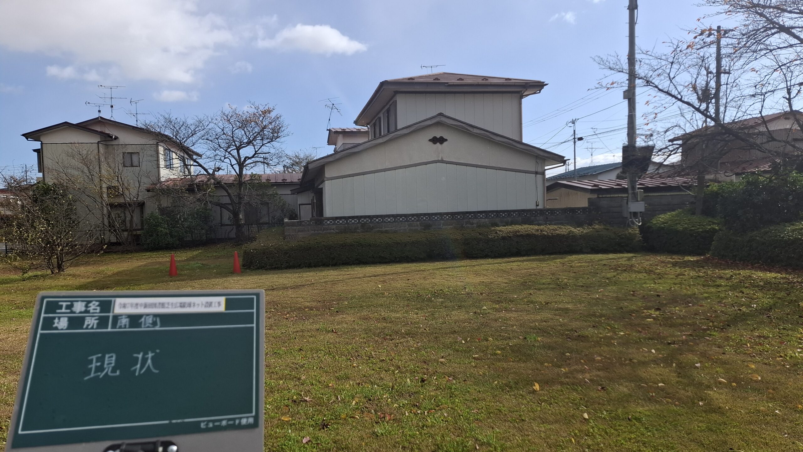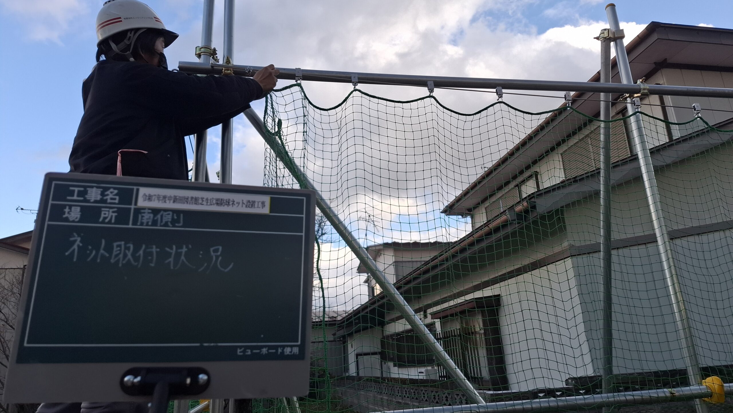 令和7年度中新田図書館芝生広場防球ネット設置工事