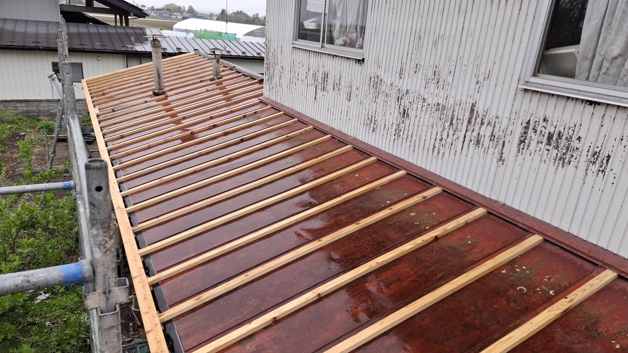予算を余りかけたくないという事で、今回は既存の屋根を撤去せずにカバー工法(今ある屋根を撤去しないで新たに上から被せる)で対応しました。