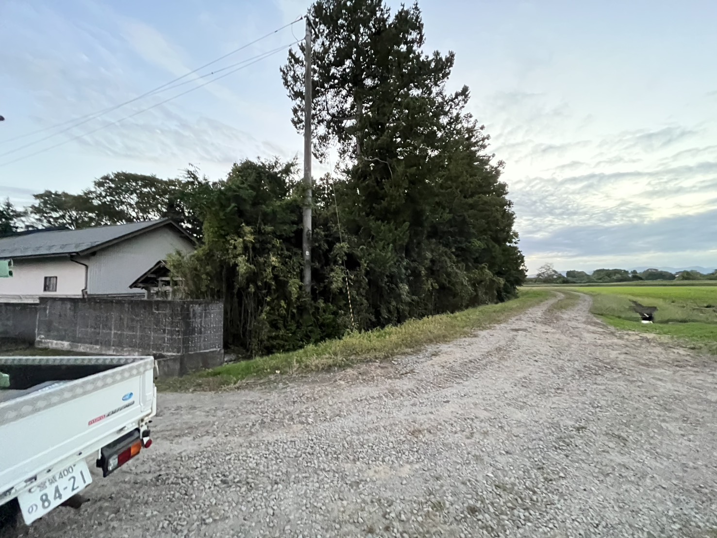 お施主様より今ある杉林の落ち葉によるメンテナンスが大変で、全てスギ林を伐採して代わりに風よけになる物を設置してほしいとお問合せ頂きました。